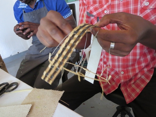 さてその後は、新製品の紹介です。新製品とは、捨てられるペットボトルを使い、ルワンダの伝統的なアガセチェとの組み合わせで作るランプシェードです。果たしてアーティストたちの反応は?いささか不安でしたが、彼らは高い関心を示し、より素敵な製品にしたいとの試作しながらの話し合いになりました。