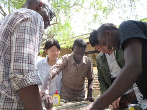 今回は、①BPランプシェードの新製品の試作と、②来学期(5月)からキブンゴの職業訓練学校で開設される「バナナペーパー・クラス」の準備のためです。