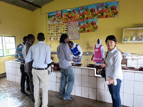 そして最後に「ここがバナナペーパー授業の教室です。」と案内されました。雨水タンクも、台所にも近い場所です。紙漉きは当面大きなタライを使いますが、できるだけ早く、教室内にせめて簡単な紙漉き用水槽設備を整えたい」と考えつつ、学校を後にしました。